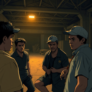Em uma noite tensa, Júlio se reuniu em um galpão abandonado com alguns desses rostos familiares, onde costumavam armazenar as mercadorias. Entre eles Além de Rodrigo estava Zequinha, parceiro dos tempos de escola e um dos poucos que ele ainda considerava confiável. Zequinha, com o boné sempre puxado para baixo, mexia nos dedos com nervosismo, lançando olhares desconfiados aos outros presentes.